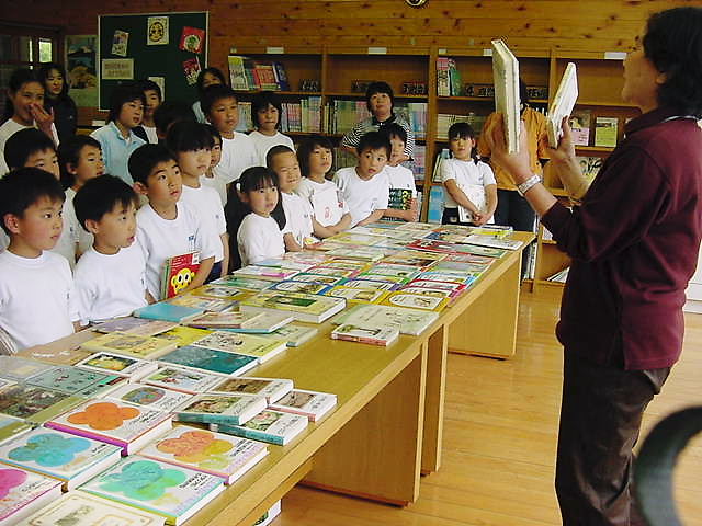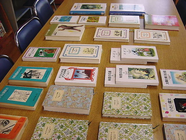 図書室の机に表紙が見えるように並べると、見やすく借りやすい。