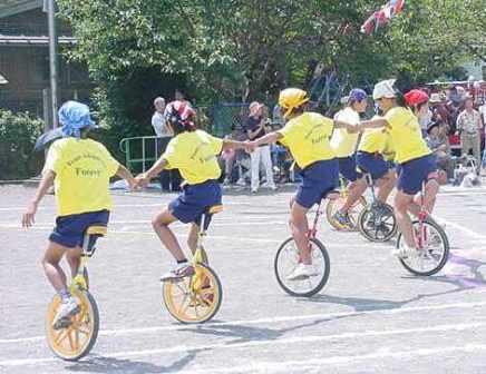 リズミカルに全校ダンス みんなで華麗に一輪車演技