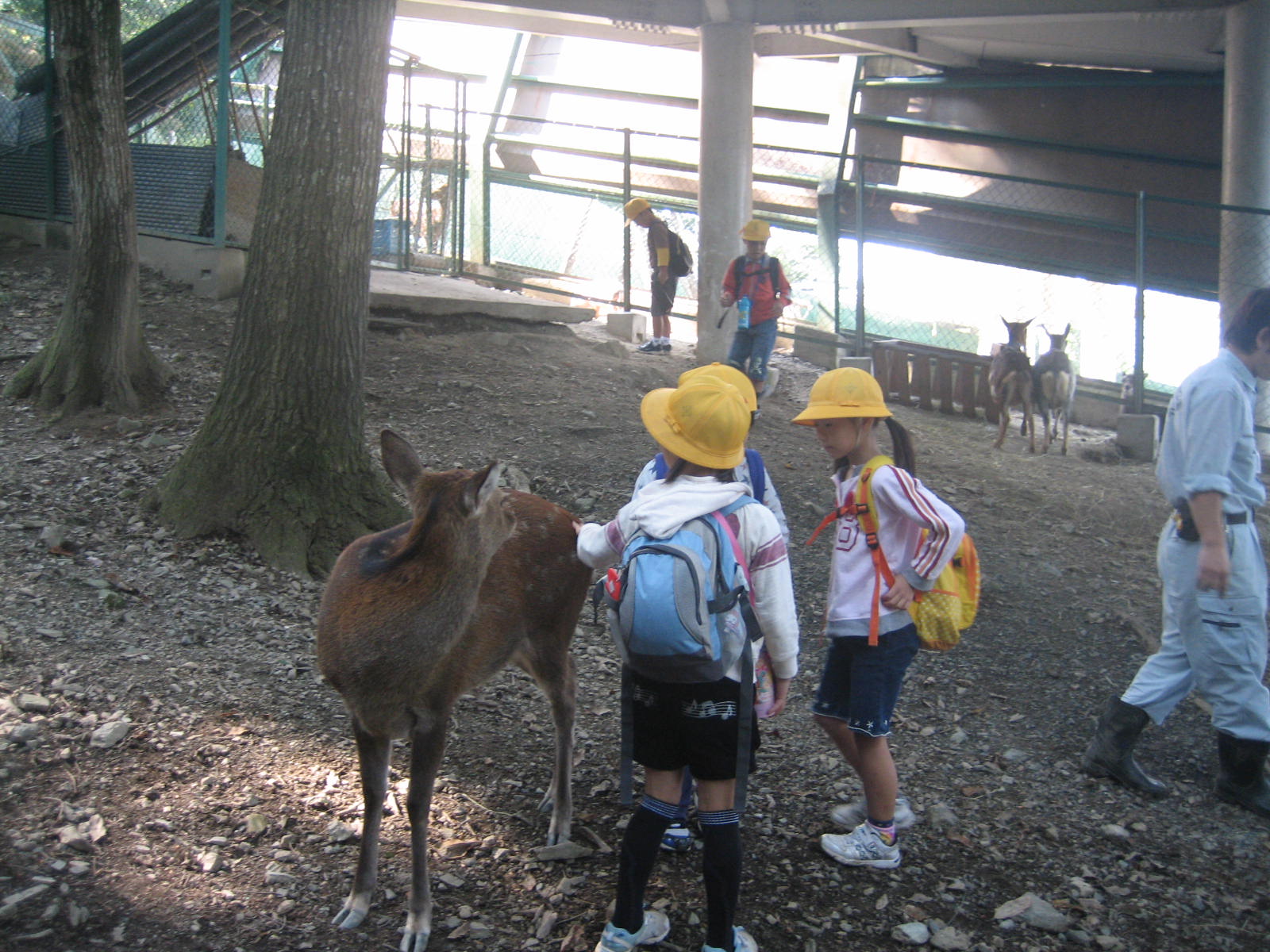 社会科見学(3〜6年) 宝登山の動物園でシカとふれあいました。