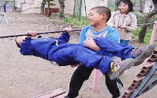 上の写真は、最初は逆上がり補助板を蹴るタイミングさえつかめなっかた子が、6年生の補助により、その休み時間のうちに、自分で蹴ってあがれるようになってしまった様子です。その進歩ぶりに、思わず周りにいた子全員で万歳をしてしまいました。
