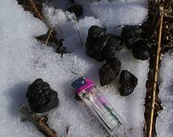 糞が凍ってなかったので そんなに時間が経っていないかもと 用心深く足跡を追った。