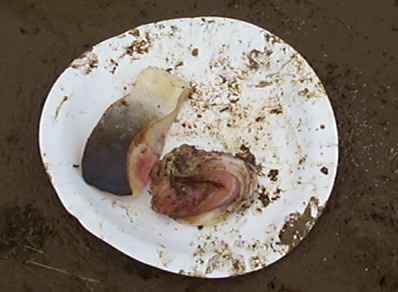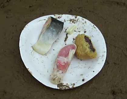 意外や意外 肉食目なのに鶏肉と魚を食べなかった。 位置がかなりずれているので もてあそんだのは確か。
