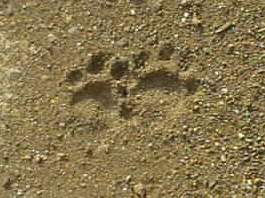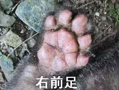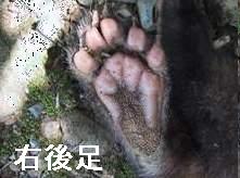 ハクビシンの前足は 人間の手に とってもとく似ている。 まず1つは 指が付け根付近から手のひらに向かって曲がること。 2つ目は 特筆すべきことで 手のひら(肉球)に真ん中へんに左右に筋が通っているが 人間の手のように折り曲げられること。 この2つで ものをつかむことができる。 足跡を見ると 爪跡は残っていない。 足跡図鑑を見ると 必ず爪跡が描かれているが あれは嘘! 通常は猫と同じように引っ込んでいて 必要なときだけ出す。 また 足跡は前後の足跡が酷似している。 図鑑では 後足が細長く描かれているが これも嘘だ。 |