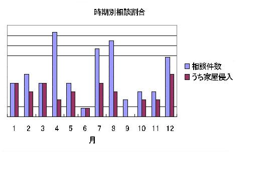 冬期は家屋侵入 夏期は農作物被害とはっきりと区別がつくようだ。 しかし 年間を通じて 家屋侵入による被害が発生し その割合が高いことを考えると ハクビシンが農業関係だけの問題に留まらず 社会問題となっていることを物語っている。