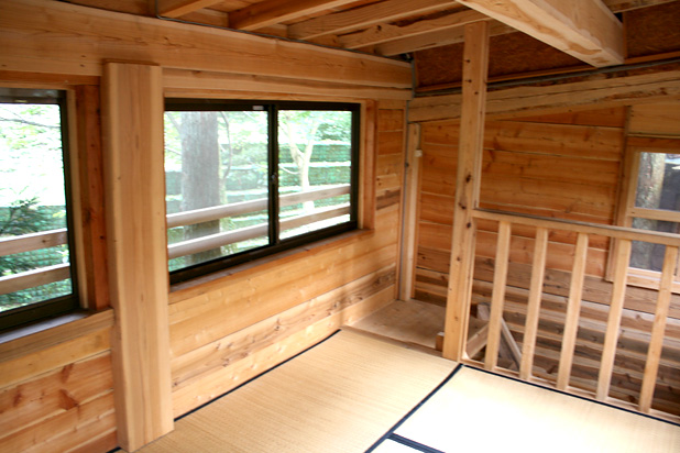 広々ウッドデッキで建物の前に広々バーベキュースペースがあります。